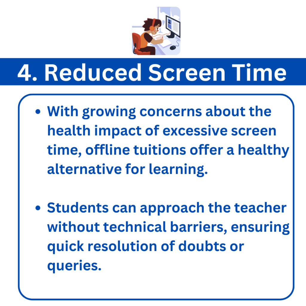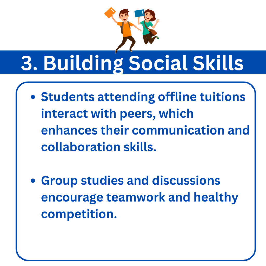 Offline tuitions play an important role in the academic journey of school-going children. Despite the increasing popularity of online learning, offline tuitions have unique benefits that cater to the holistic development of students. Here’s why they are important:
